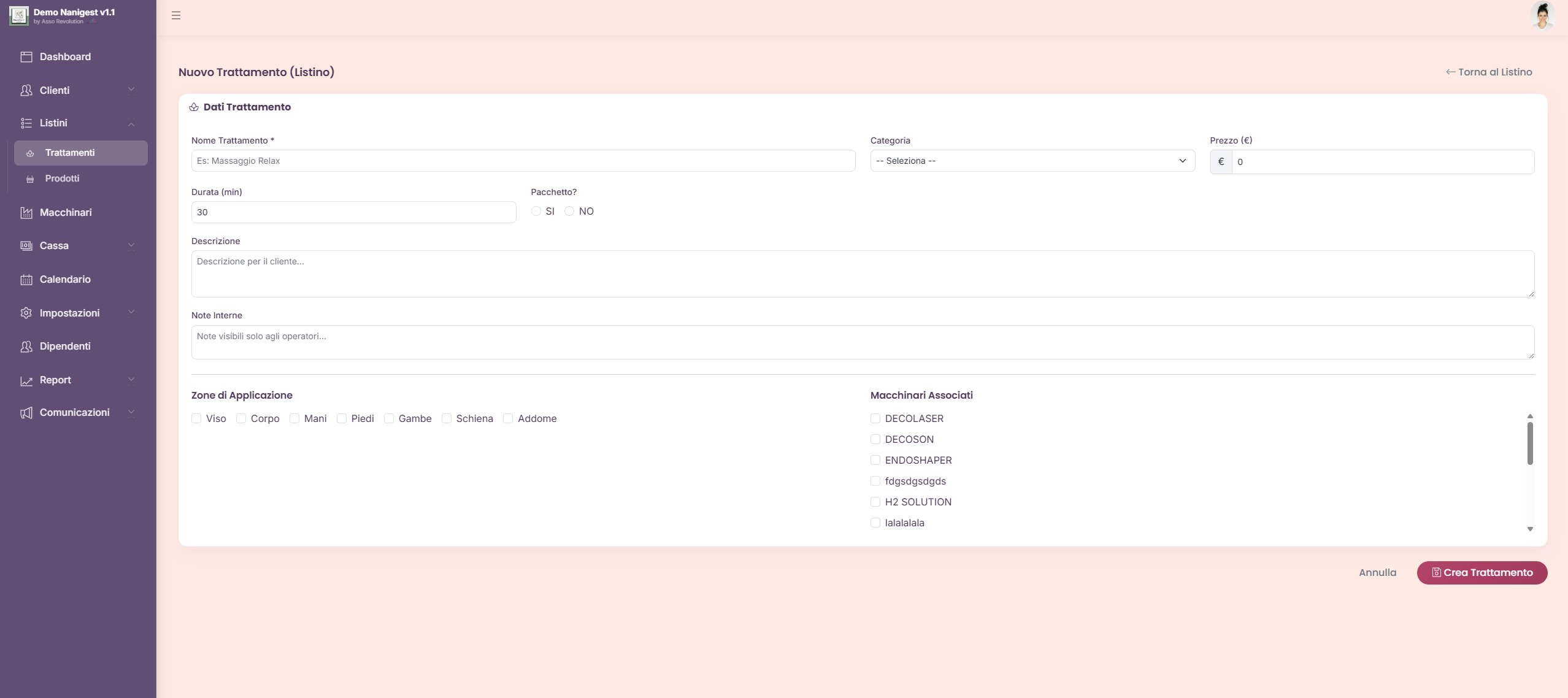 Liberatorie Trattamenti e Macchinari “Devi utilizzare macchinari specifici o eseguire trattamenti delicati? Nanigest mette a tua disposizione le liberatorie e i moduli di consenso informato pronti da stampare e far firmare. Tutela il tuo lavoro e rassicura il cliente con una gestione professionale e trasparente.”